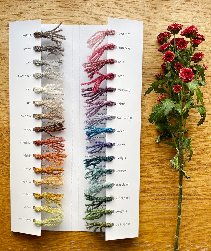 The new British Breeds Shade Card is a high quality, printed folded shade card with a hand tied wrapping of each of 30 colours in the current British Breeds palette.